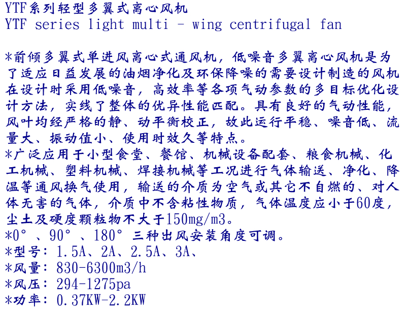 YTF系列輕型多翼式離心通風機